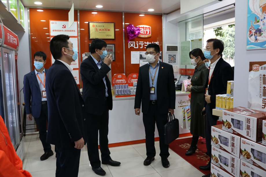 叶珊瑚一行第一站抵达“风行生活”沙太路旗舰店,实地检查了门店的防疫工作情况,询问了解专卖店恢复营业、产品销售等情况,向当班店员表示慰问并送上防疫用品。
