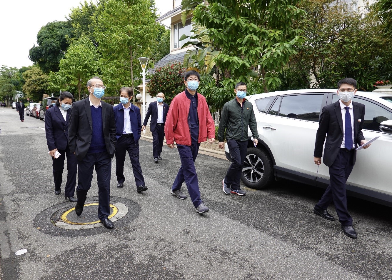 在品秀星瀚项目,突击队一行实地察看了项目营销中心、施工现场等重点场所封闭管理情况,走访检查了项目公共场所防疫措施落实情况和现场开工情况,对保障项目全面复工的关键生产要素、进一步完善“一人一档”等工作提出指导性意见。张招兴书记强调,要密切关注一线员工的健康与情绪状况,进一步加强职工自身防护,切实保障职工生命健康安全。