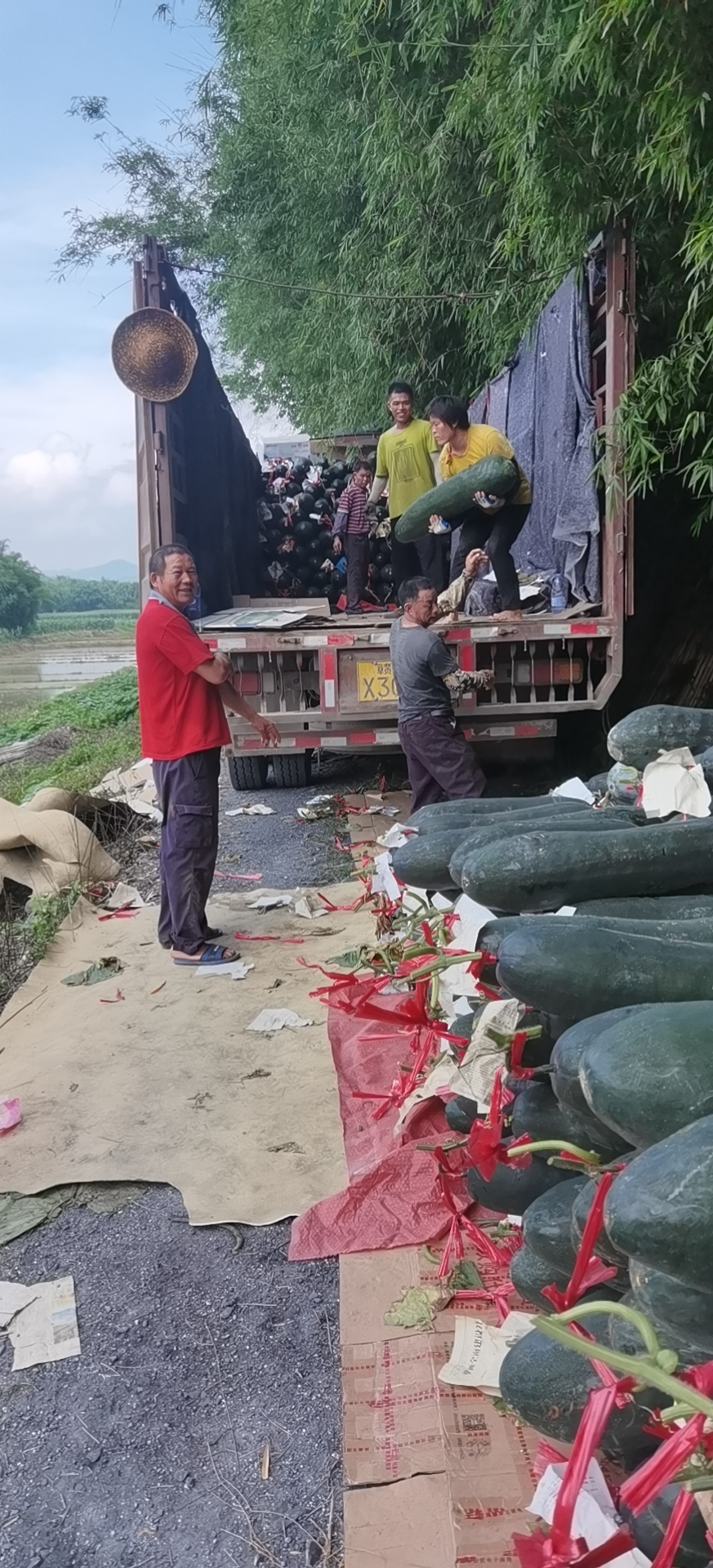 昔日你帮我,今日我撑你!清远英德市西牛镇赤米、高道、鲜水村三个村村委自发筹集抗疫生活物资驰援广州,此次捐赠的物资有冬瓜3万斤,即食笋100箱,鲜泉大米30箱,养肝草100袋,茄子1万斤,价值约9万元,这批捐赠物资抵达广州后,将按照广州市驻清远市扶贫工作队的统筹安排,通过集团下属风行食品板块及时供给广州市封闭隔离区的居民。
